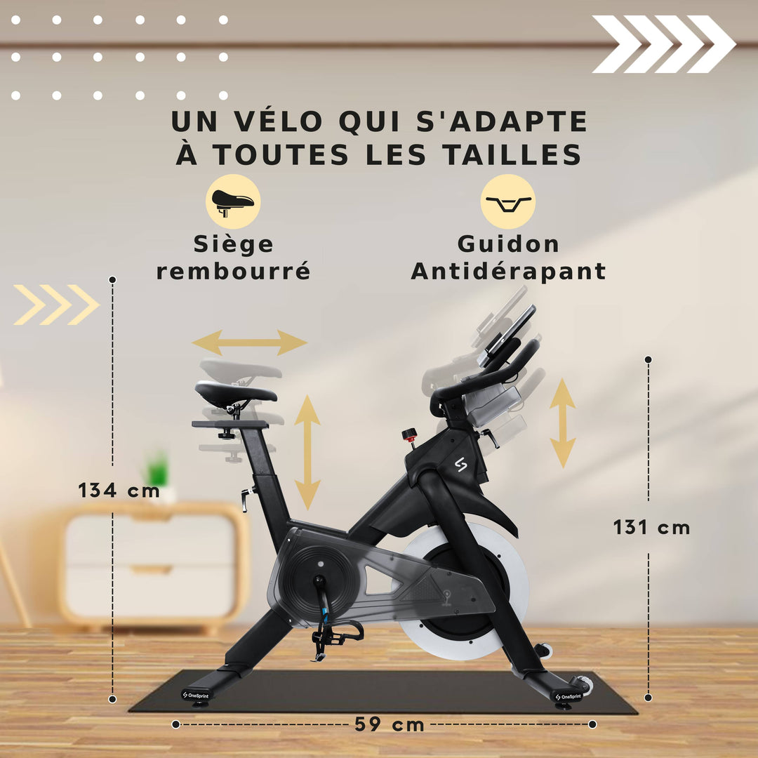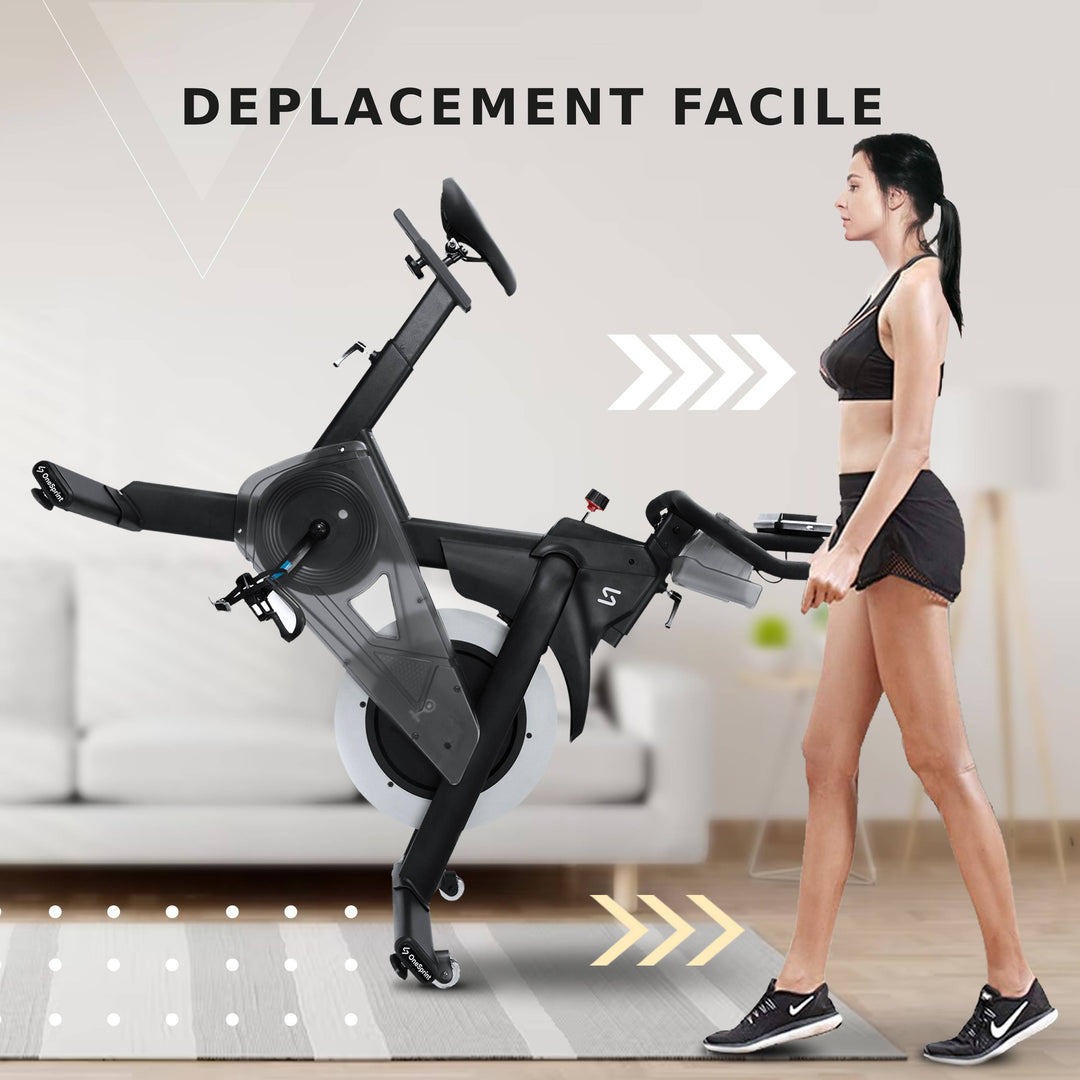 Cela permet aussi bien aux personnes de petite taille qu'aux plus grandes de déplacer le vélo d'appartement très facilement et de profiter de l'expérience Onesprint où qu'elles le souhaitent.